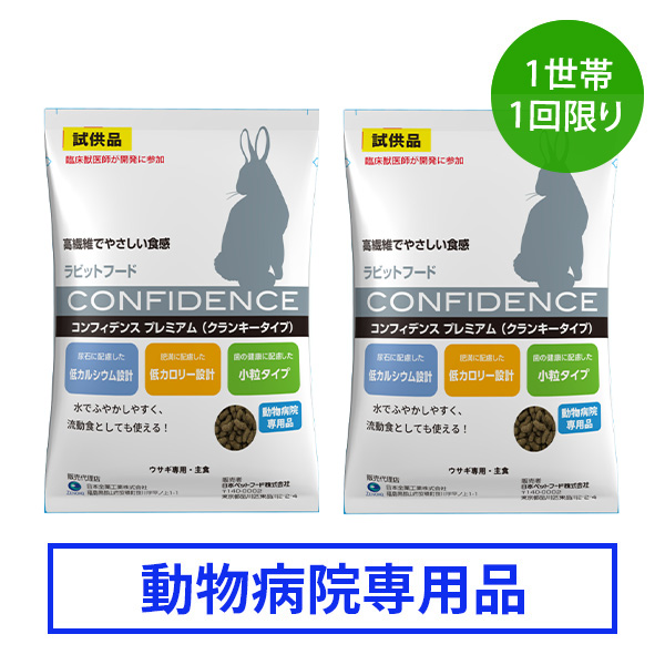 こちらの商品は、動物病院専用品です。 試供品2個セットを数量限定で提供中ですので、この機会にぜひお試しください。 お試し後は、動物病院にてお買い求めください。 ※コンフィデンスシリーズのお取り扱いについては、各動物病院へお問い合わせください。